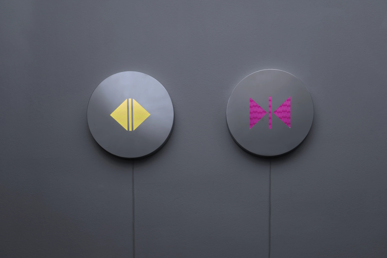 Open,close_2507 열림, 닫힘_2507, 2025, Light panel, Stainless steel, Dia.38*d4.5cm, 2pcs
