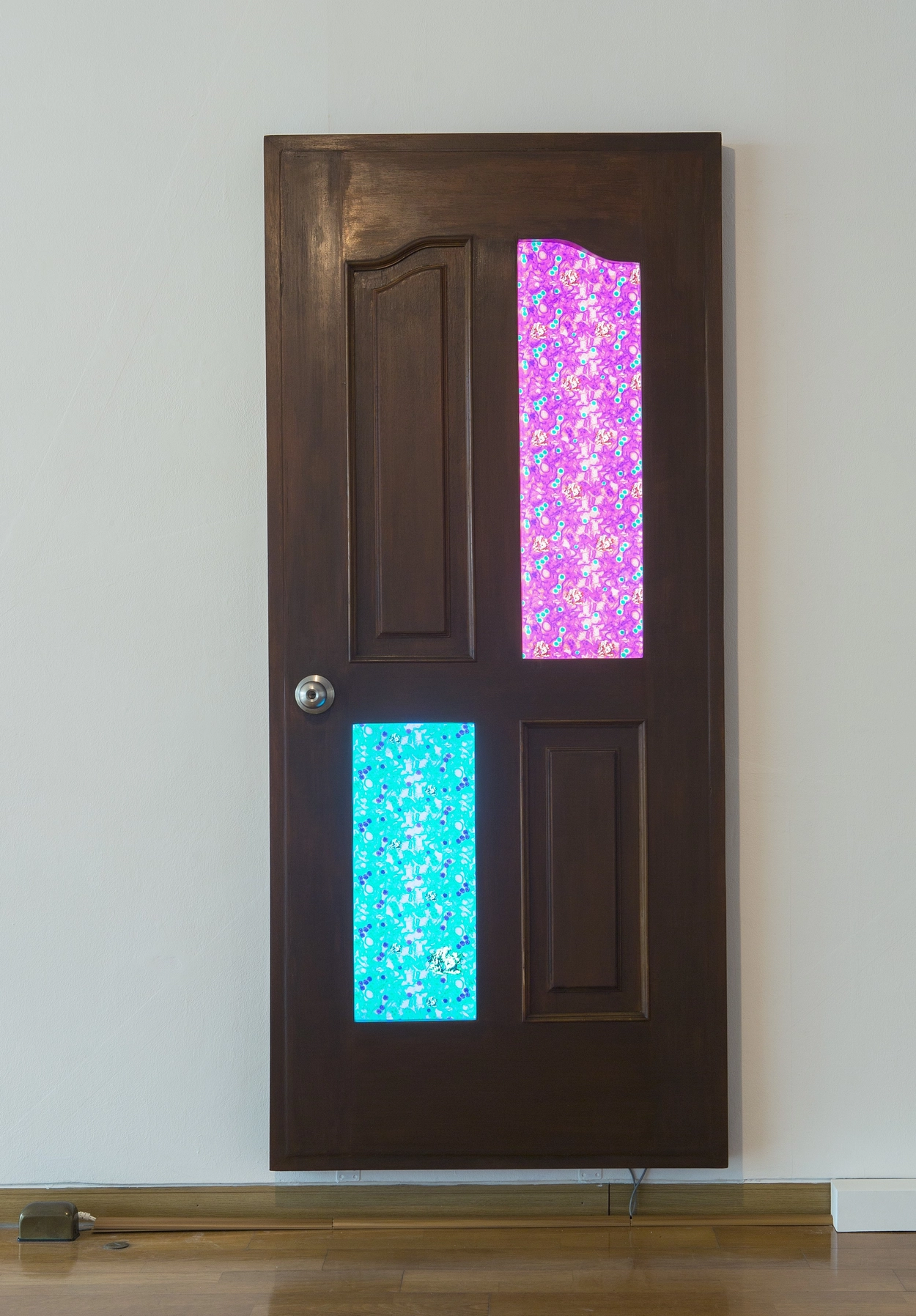 Passage of healing 치유의 통로, 2018, Light panel,old door, h 20.4*w 89.5*d 9cm