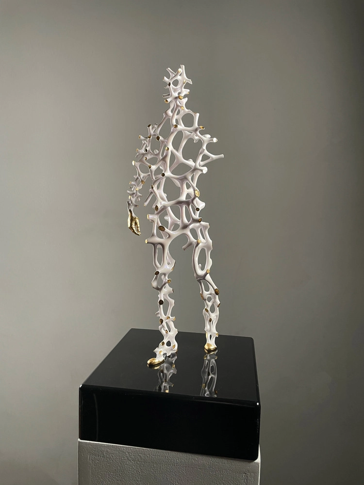 This sculpture is an architectural imagination of the invisible, continuous process of choices made within an individual's life, designed so that this internal structure is revealed only at the moment it brushes against the surface of the skin. The points of contact that emerge on the surface glisten in gold, visually evoking the reality that only the traces of results—rather than the entirety of the process—remain in the world. These golden points are scattered like celestial stars, forming the unique constellation of a single human being, inviting the viewer to trace the trajectory of these choices as if navigating a nautical chart.