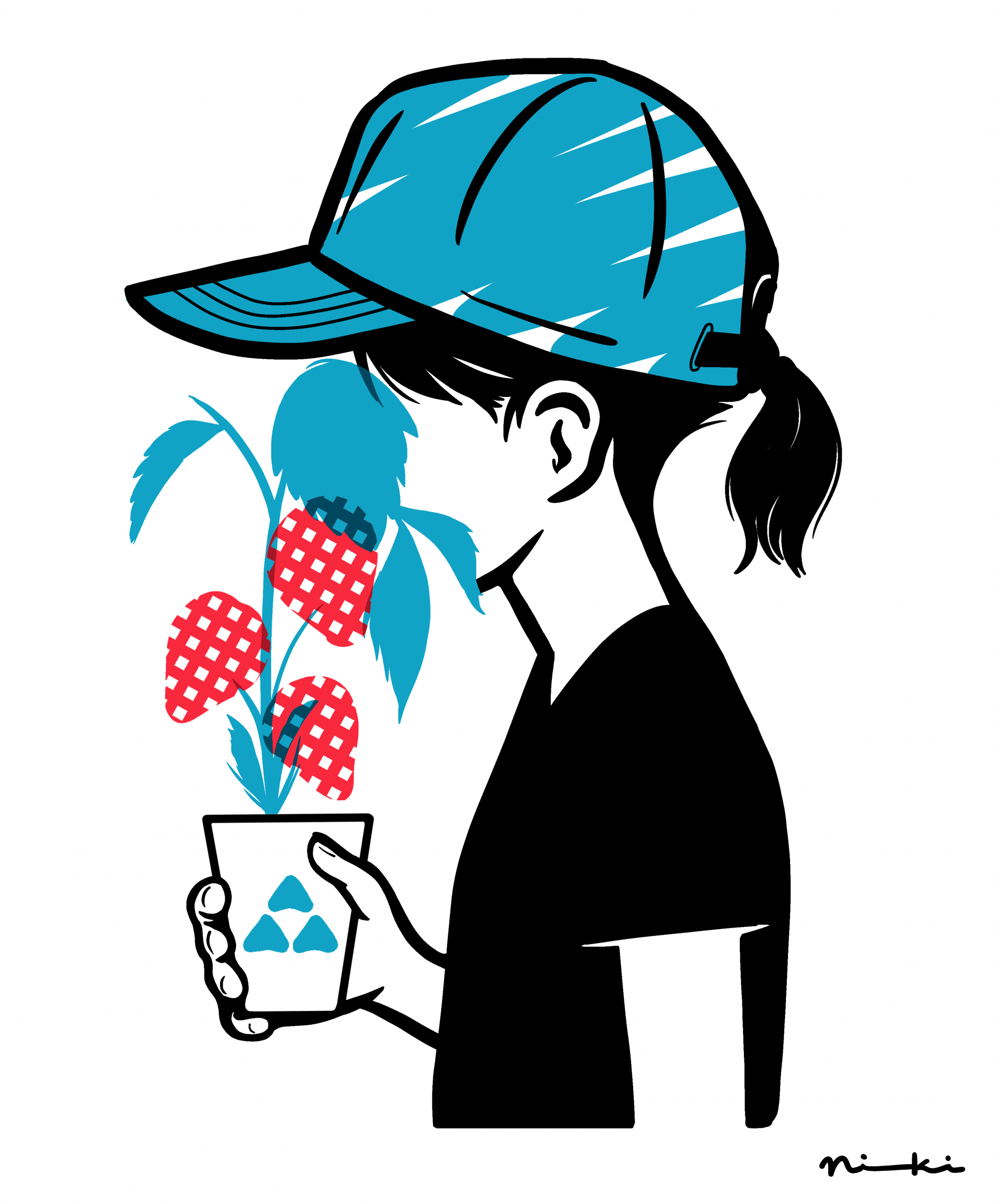 니키는 일본 시즈오카에서 활동하는 일러스트레이터이다. 아크릴 물감으로 캔버스 작업을, 태블릿으로 디지털 작업을 하고 있다. 그의 요청으로 성별, 나이, 학력과 경력 등 자세한 정보를 공개하지 않는다. 그의 ‘얼굴이 가려진’ 그림처럼 현재 그는 모호한 존재이다.