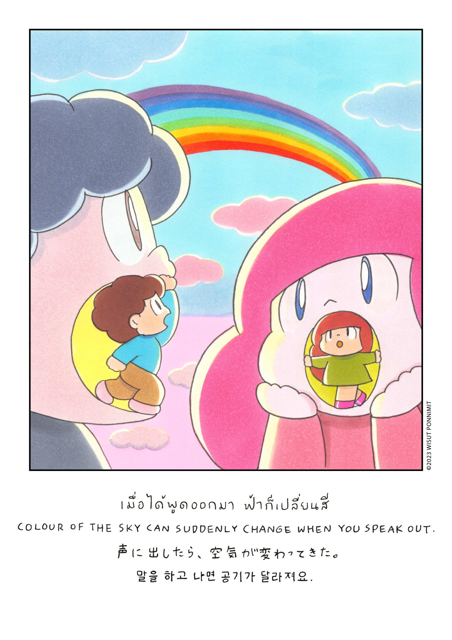 태국어로 ‘망고’라는 의미의 귀여운 소녀 ‘마무앙’과 친구들의 소소한 일상을 담아낸 그림과 한 줄 문장에는 단순하지만 삶을 관통하는 철학과 감정, 감동이 느껴진다.