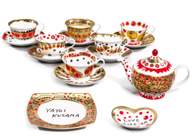 쿠사마 야요이, Kusama Yayoi, The Me that I Adore(The Grand Set) Edition 500, 2013, 도자기 세트 - cosmos, love forever, future, fish, shine, cloud, heart, flower, dream, sun, Velvet case : h29.5 x w39.5 x d39.5mm