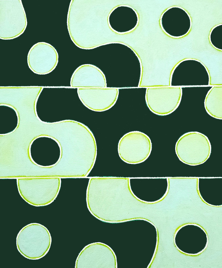 Heo Wook (b. 1973~) graduated from the Department of Fine Arts at the École Nationale Supérieure des Beaux-Arts de Paris and has been exploring a distinctive visual language through his series Cheom Cheom (添添), which translates to 'to add and add again'. Straight and curved lines, along with clearly defined surfaces, rhythmically traverse the canvas, filling it with delicate and sensory colors arranged in bold patterns.