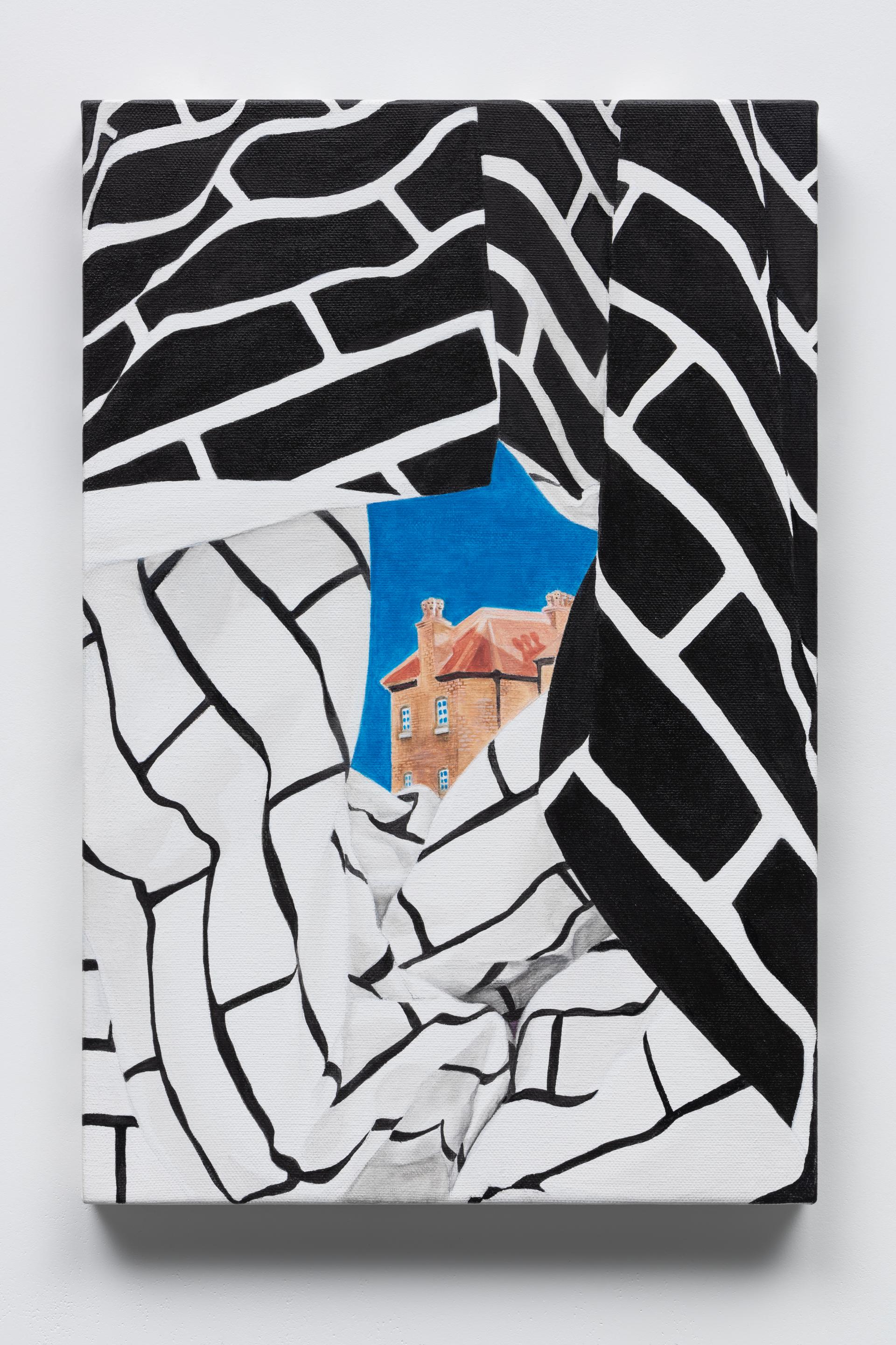 설치 작품을 평면으로 재해석한 작업이다. 천처럼 표현된 벽돌 문양은 실제로 작가가 퍼포먼스를 위해 제작했던 설치 조각물의 일부를 클로즈업하여 그린 것이다. 작품은 공간의 유연성에 대한 작가의 기본 개념을 바탕으로, 안과 밖의 공간을 뒤집는 방식을 통해 경계를 허물고자 한다. 이를 통해 자유로운 상상의 공간을 제시하며, 새로운 세계로 들어가는 통로를 만들어낸다.
