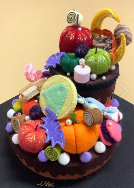 Three-dimensional sculptures inspired by various cuisines, including French and Japanese dishes, are crafted using materials such as felt, fabric, beads, and embroidery thread. The creation process involves the following steps: