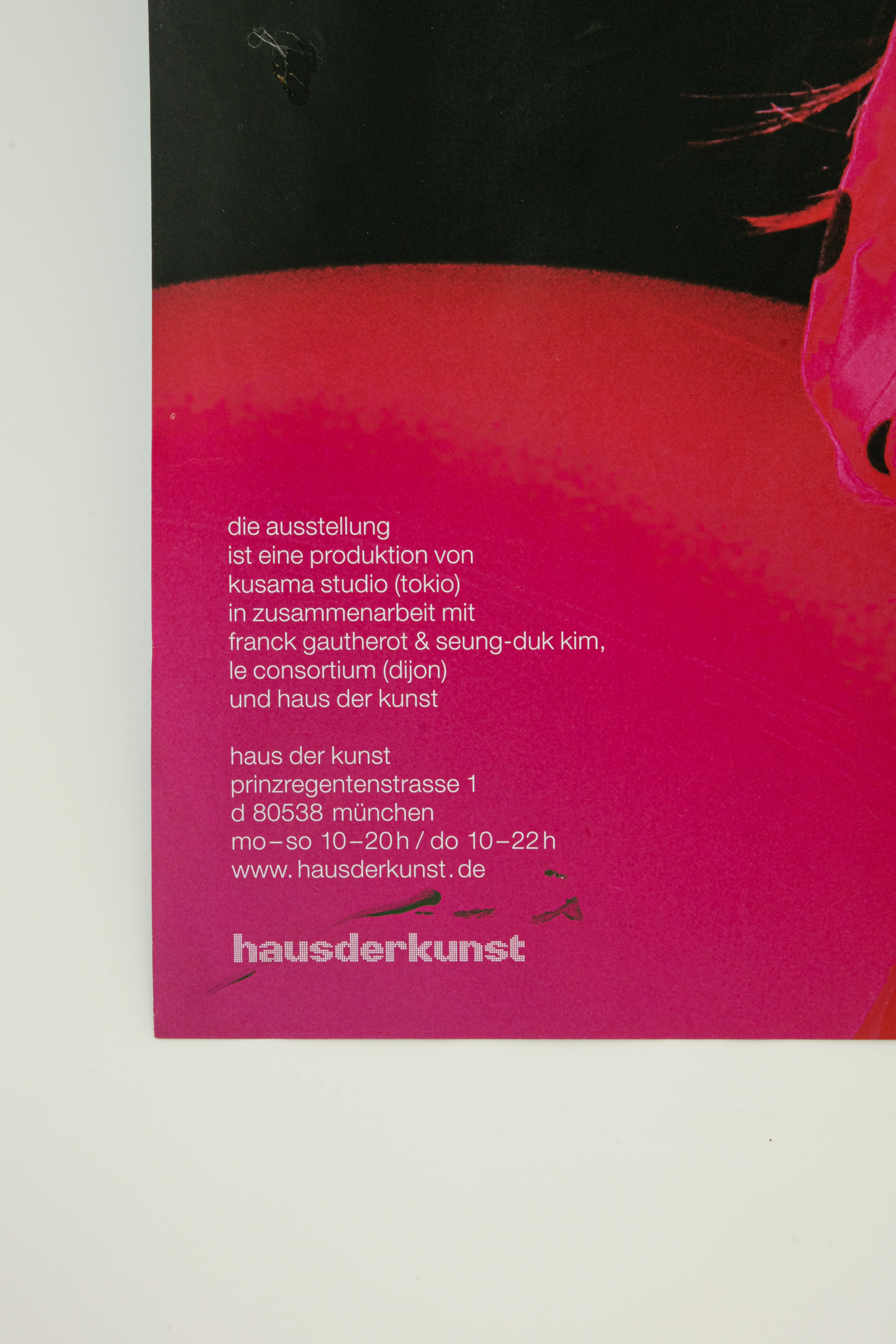 이 전시는 도쿄에 위치한 쿠사마 스튜디오, 프랑스 디종 르 콩소르시움(Le Consortium)의 Franck Gautherot, 김승덕 전시 기획자, 하우 데어 쿤스트(Hous der Kunst) Chris Dercon 와 함께했다.