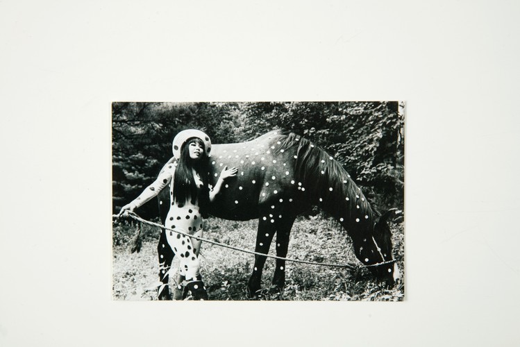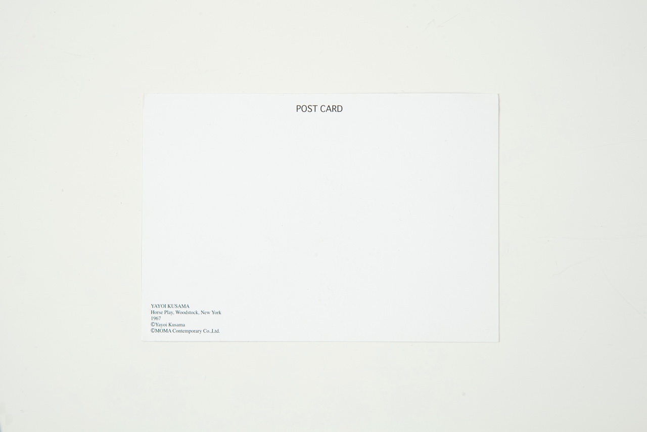 1967년에 진행된, 쿠사마의 해프닝 <홀스 플레이(Horse Play)>를 촬영한 엽서.