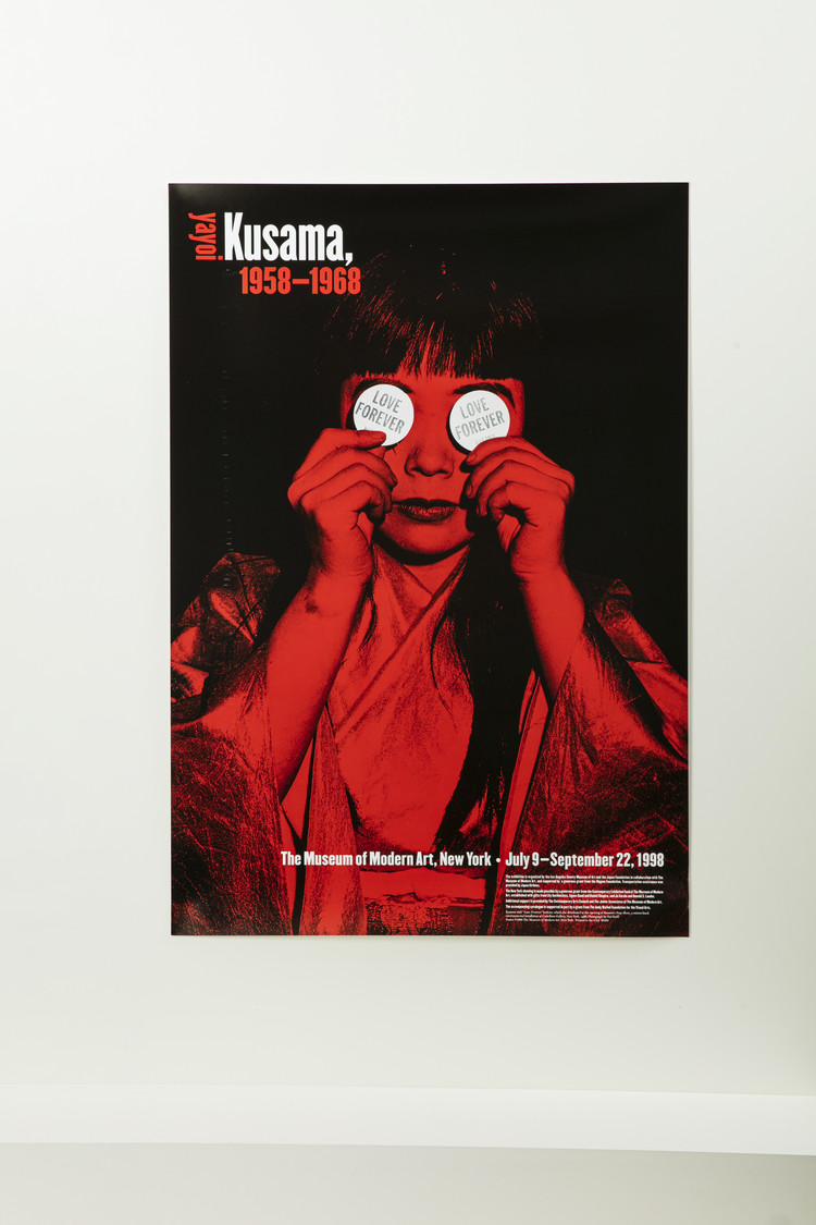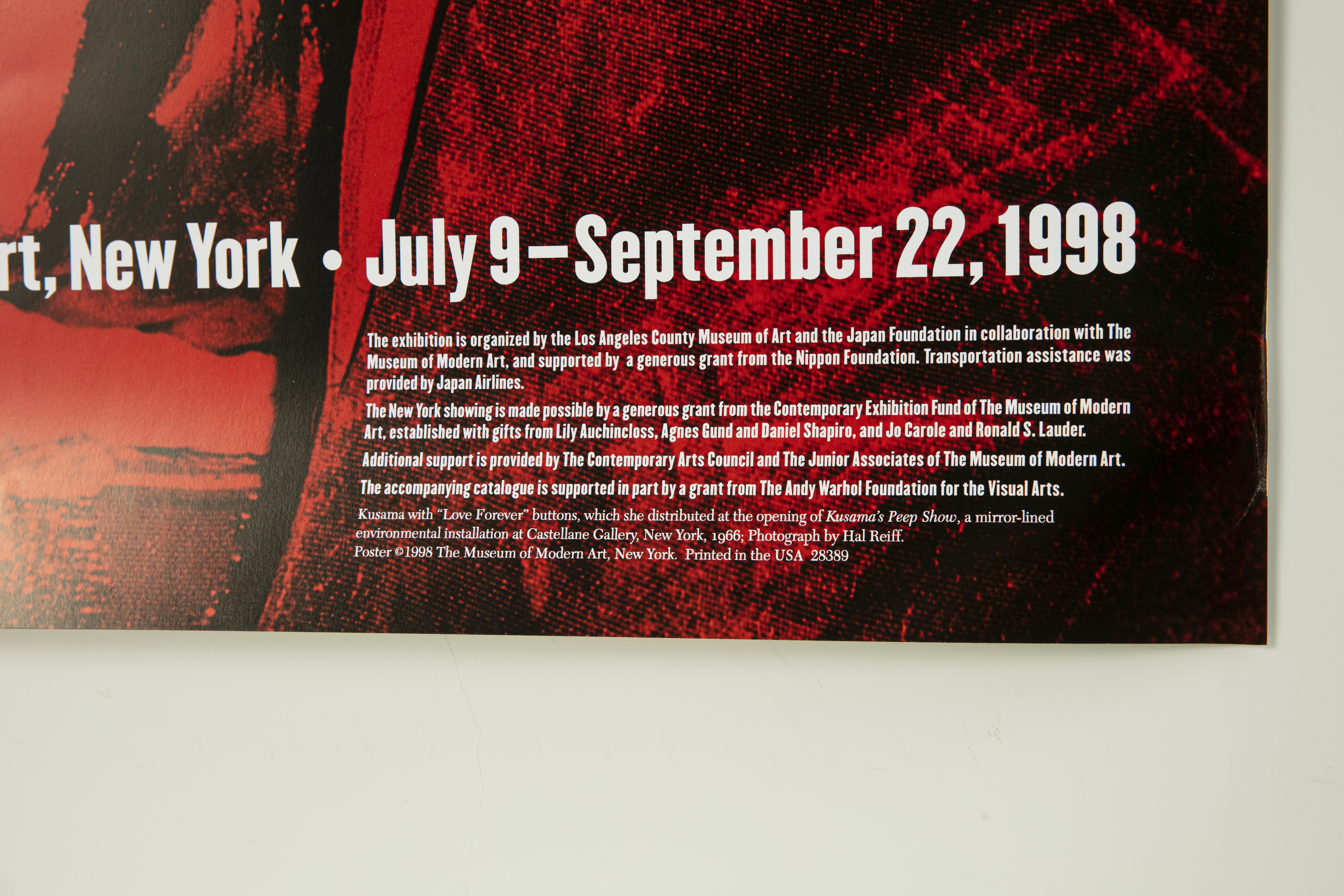 1998년도 7월 9일부터 9월 22일까지 뉴욕현대미술관(MoMA) 에서 열린 <Love Forever : 쿠사마 야요이> 전시회 홍보 포스터.