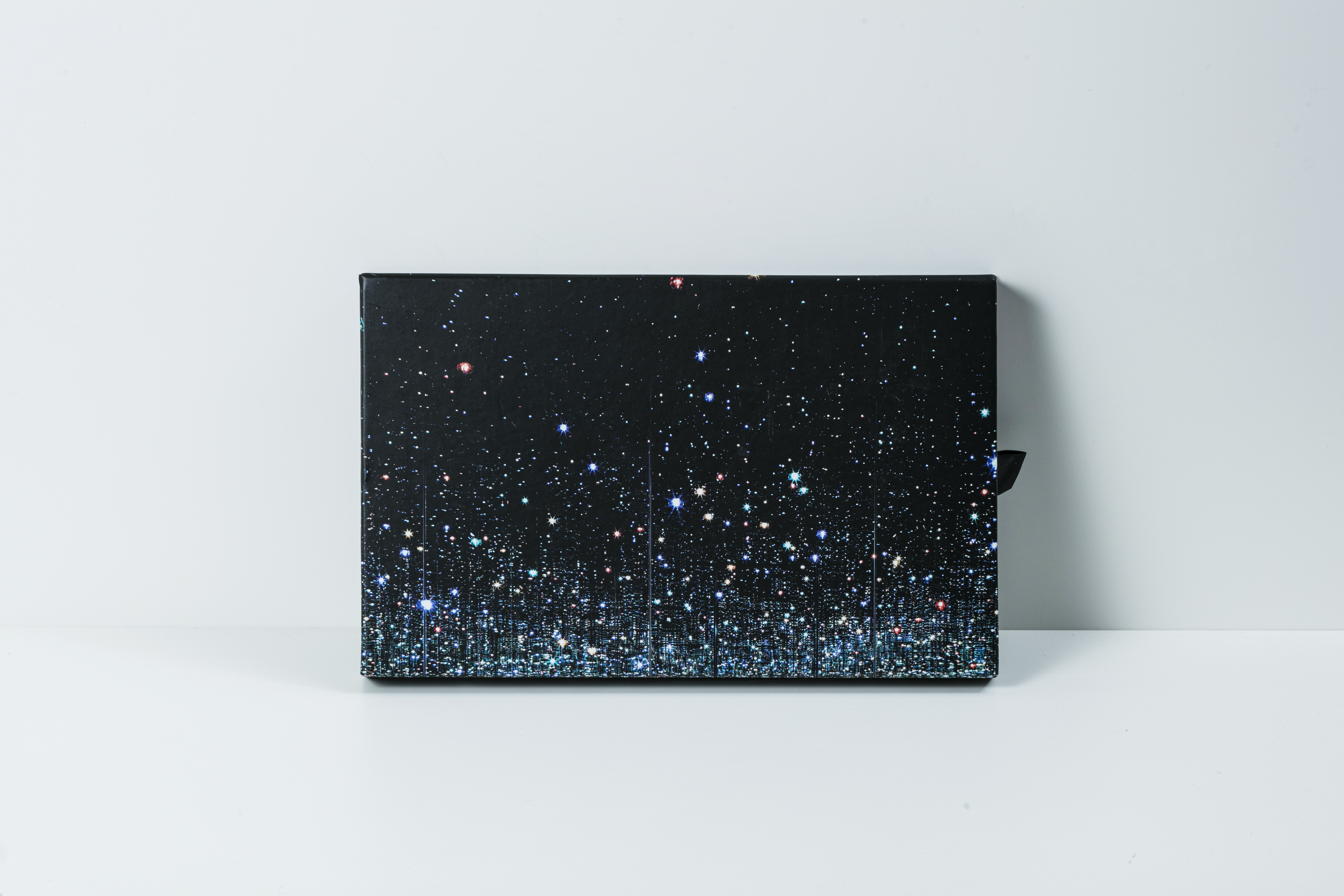 쿠사마의 대표 작품중에 하나 ‘Infinity mirrored room: the souls of million of light years away“ 작품에 영감을받아 만들어진 클러치백.