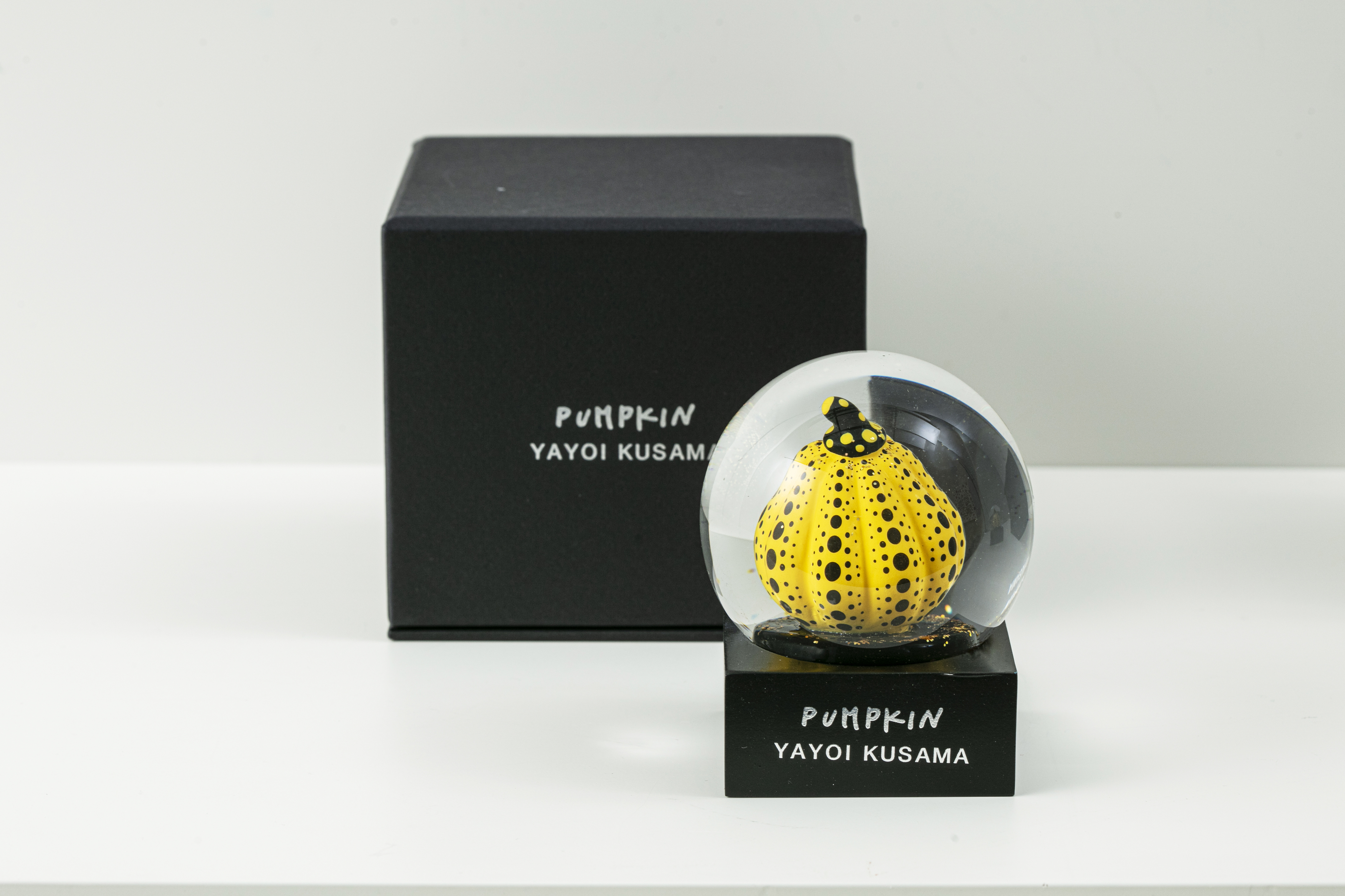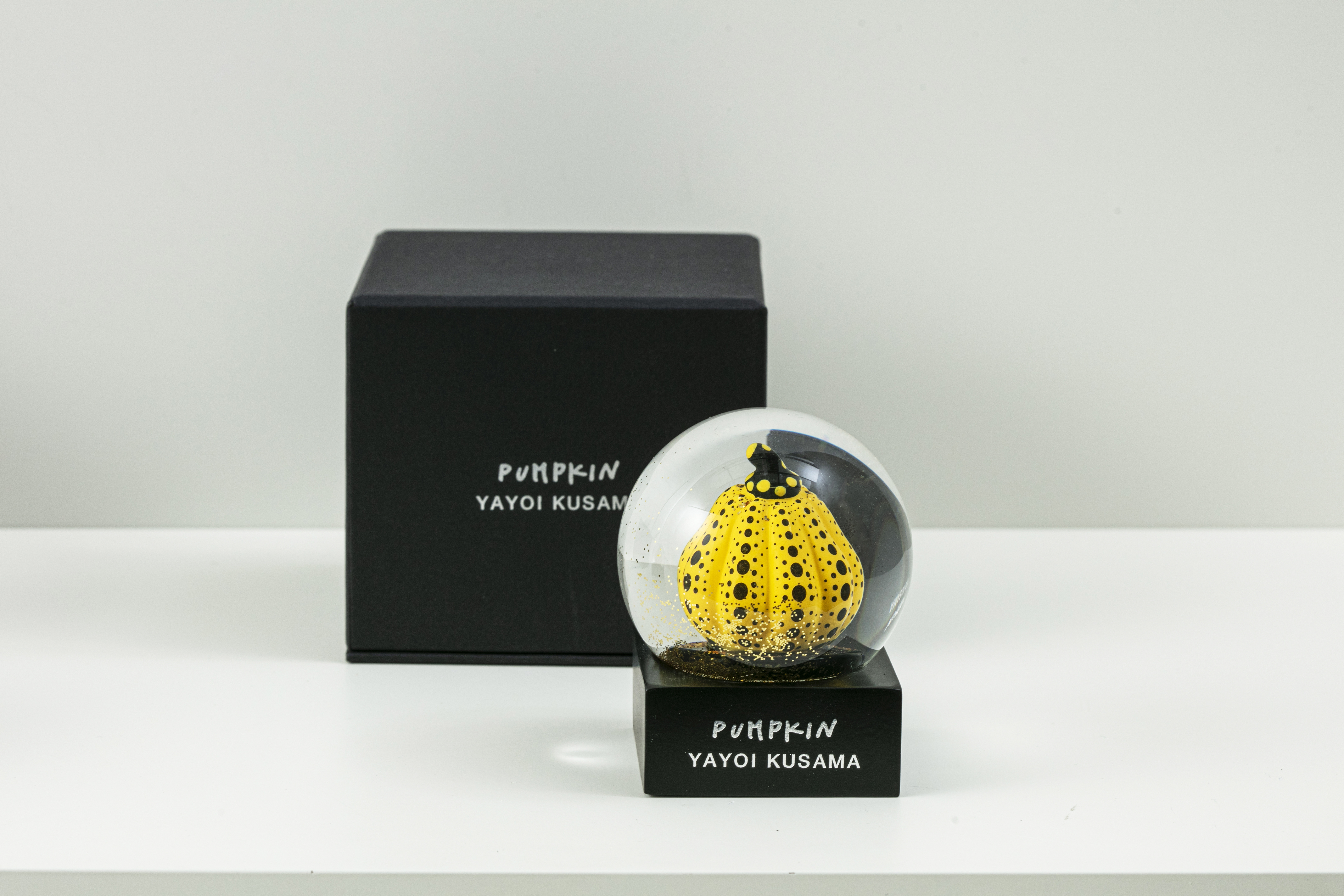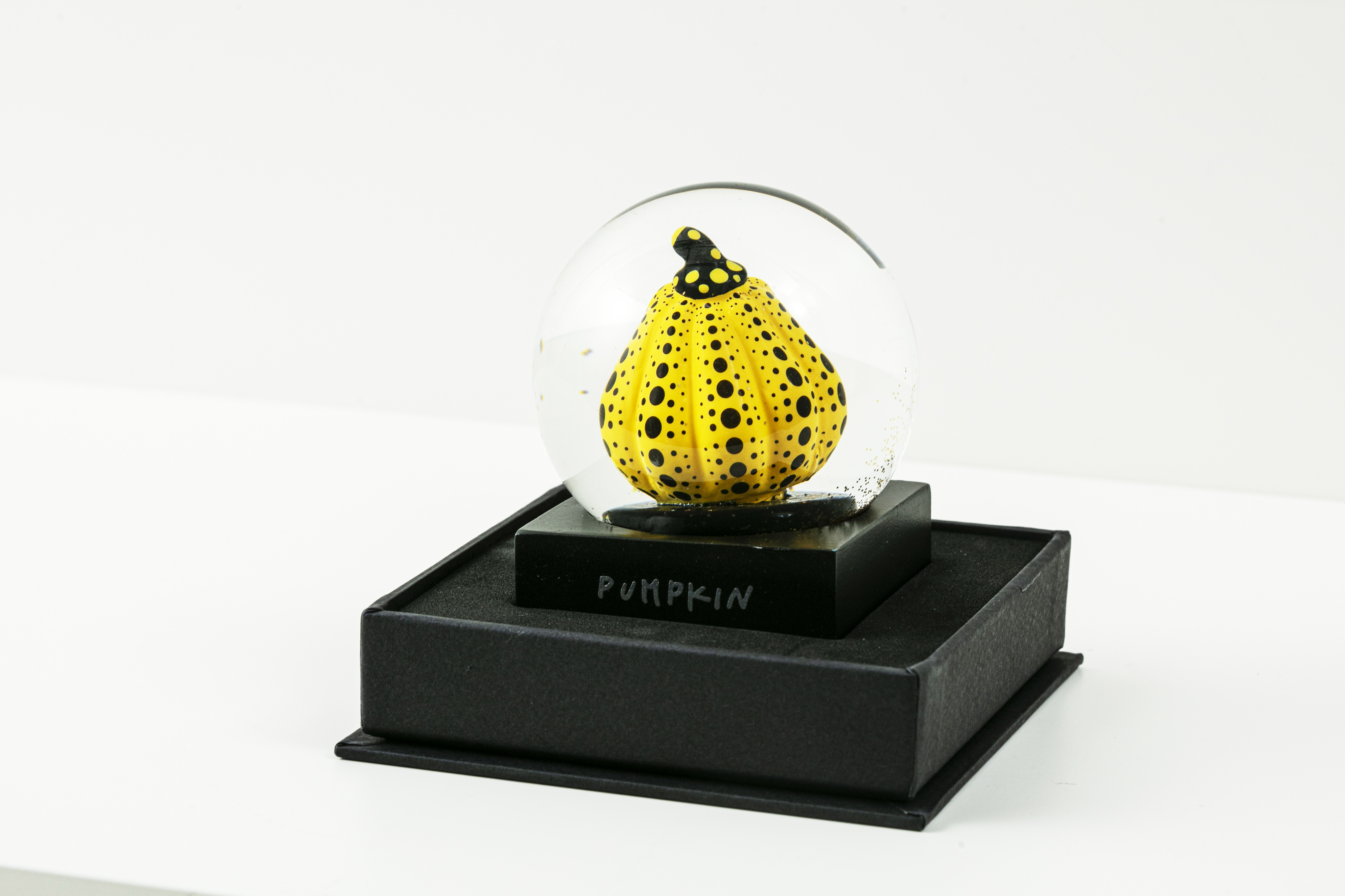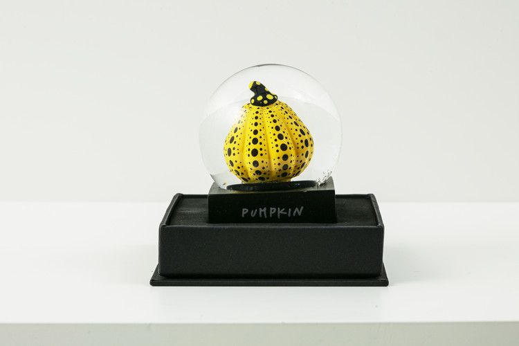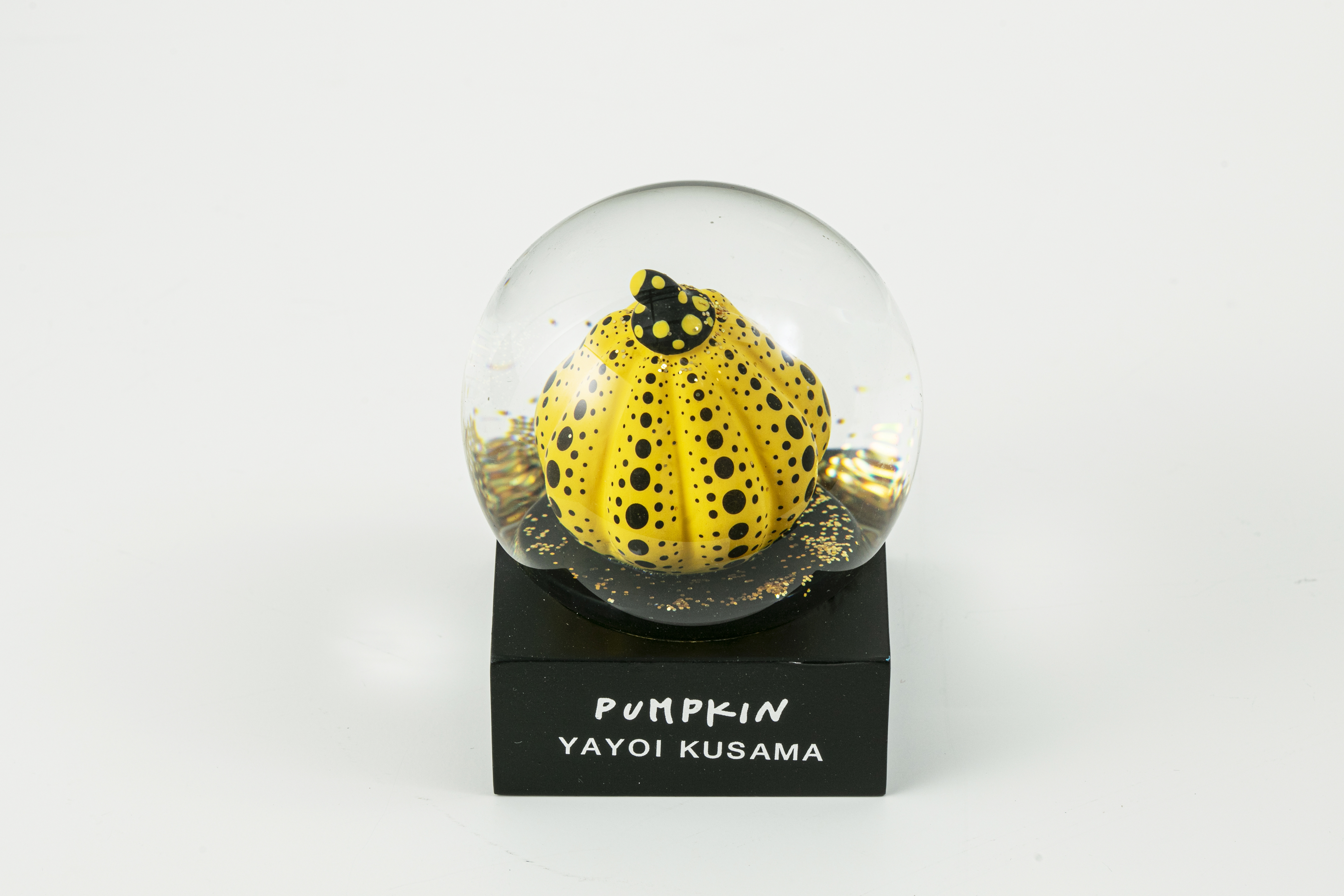 MoMA 디자인 스토어에서 쿠사마의 작품 <호박>에 영감을 받아 만든 황금색 반짝이가 담겨있는 스노우 글로브이다.