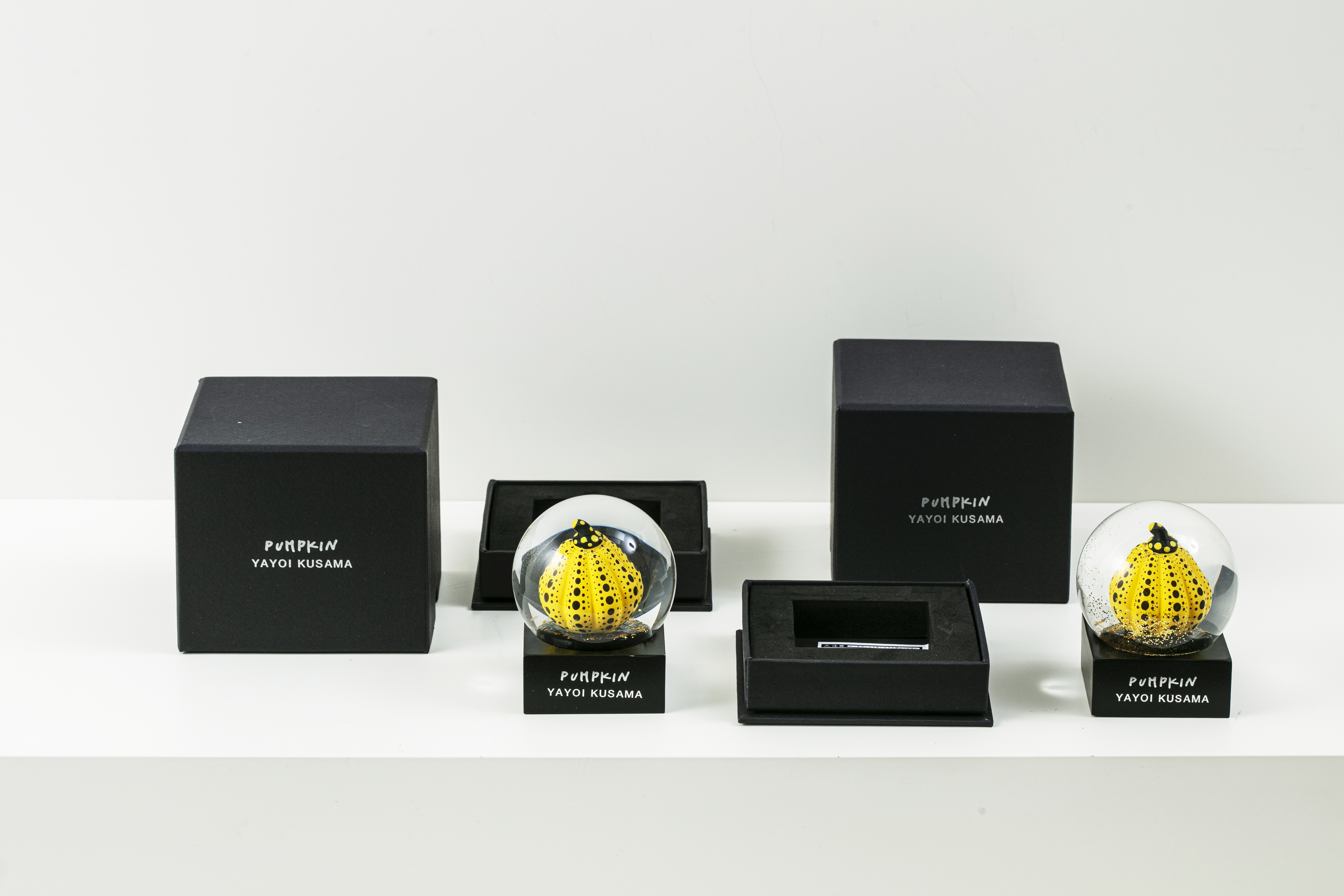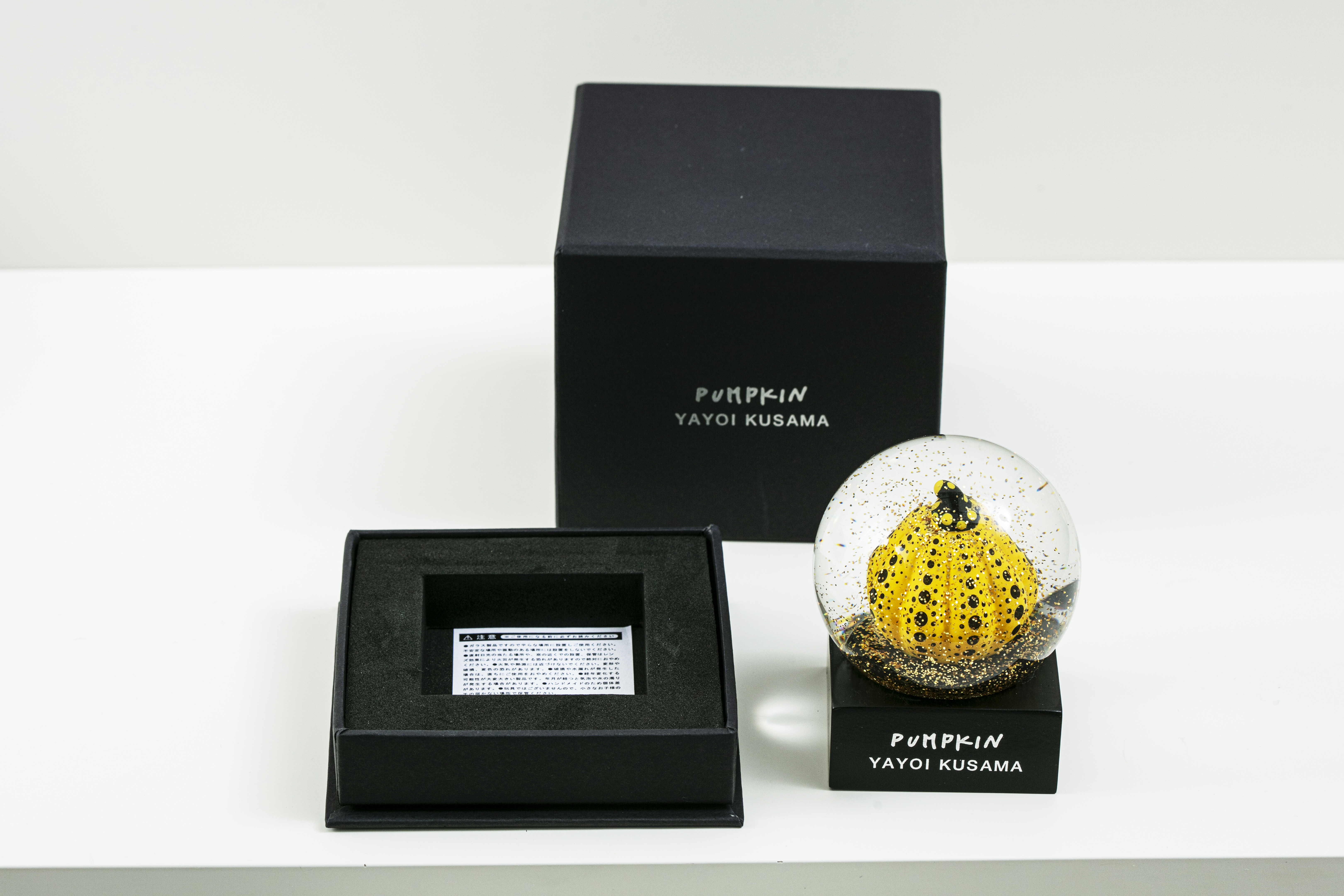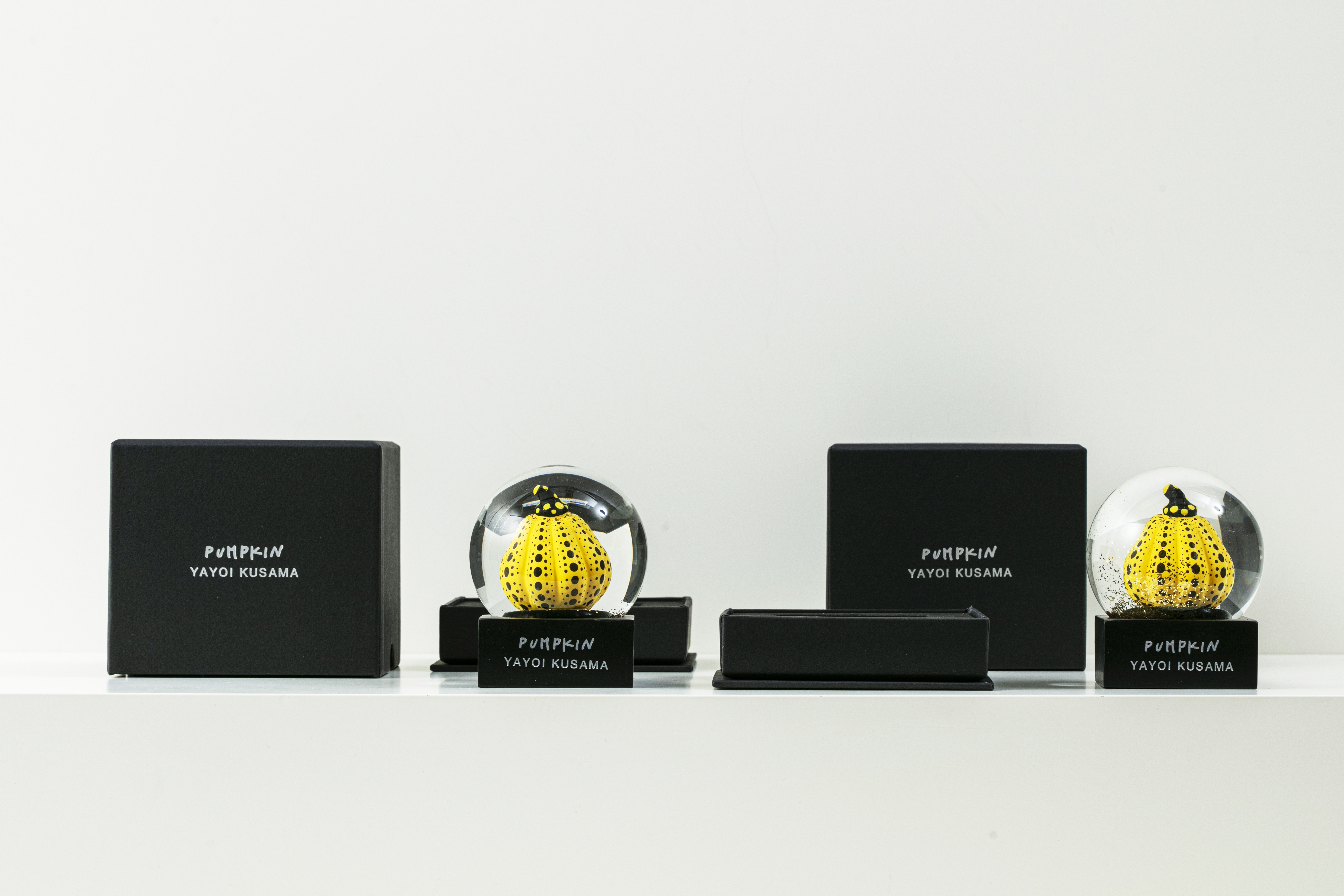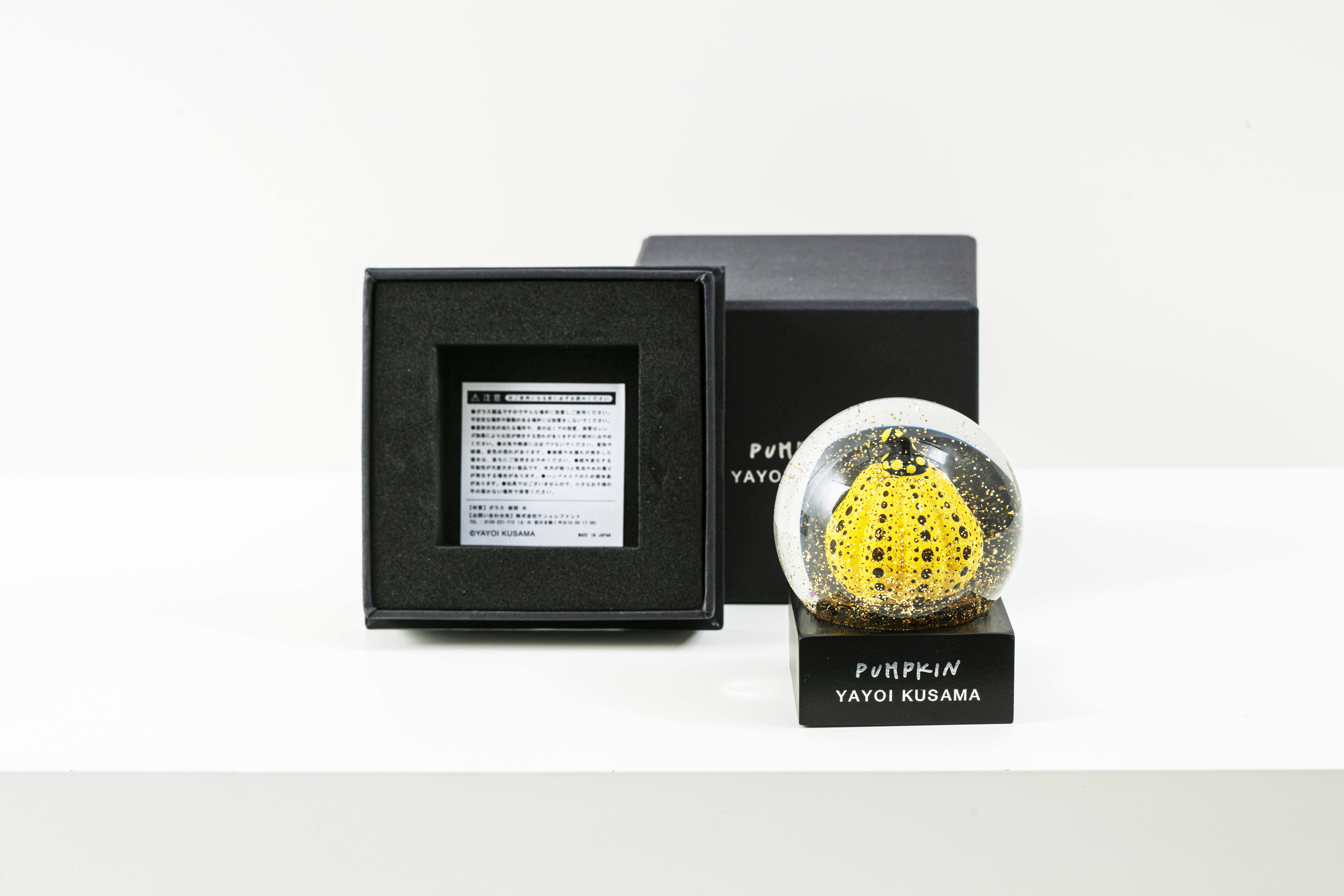 MoMA 디자인 스토어에서 쿠사마의 작품 <호박>에 영감을 받아 만든 황금색 반짝이가 담겨있는 스노우 글로브이다.