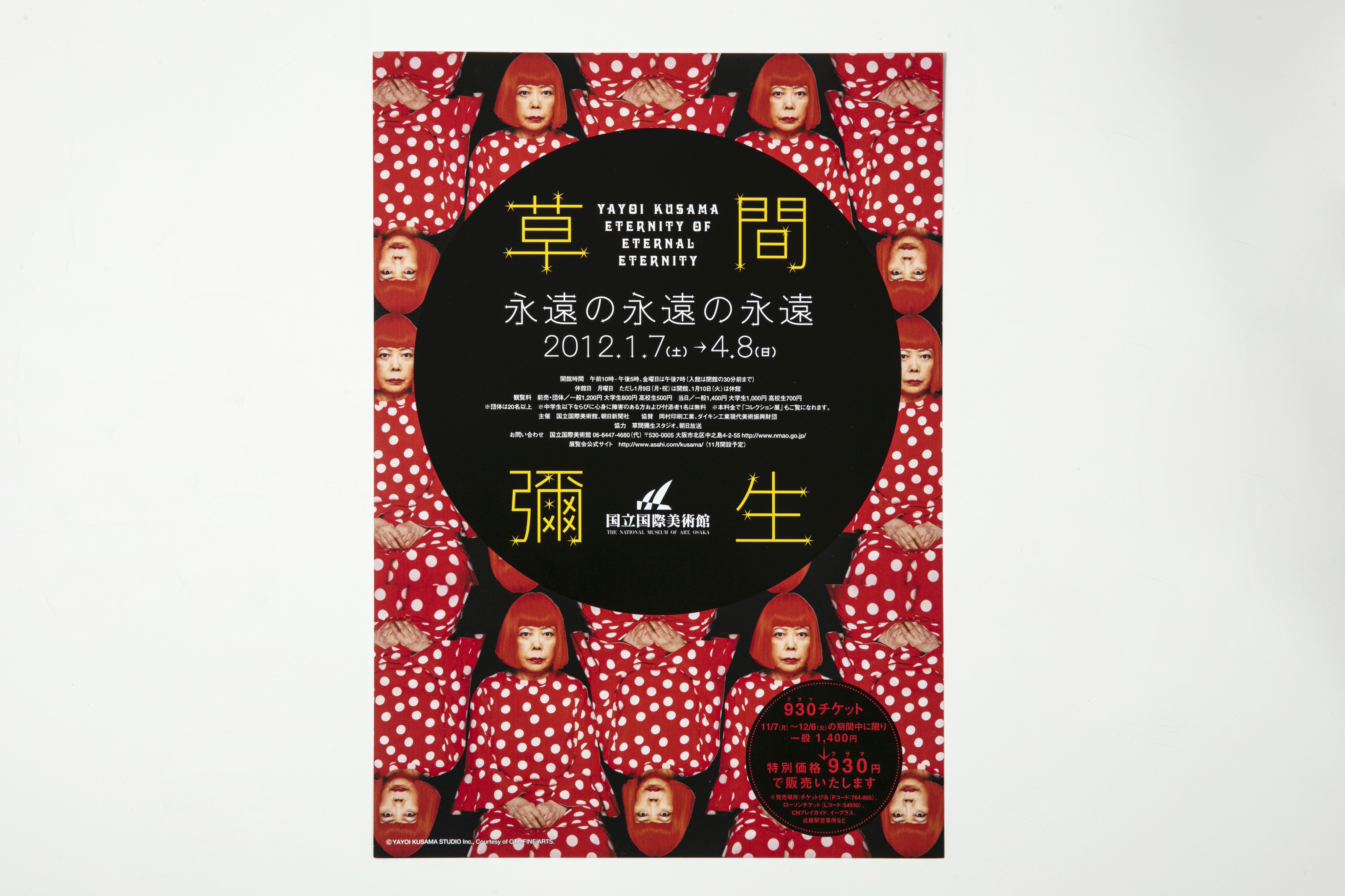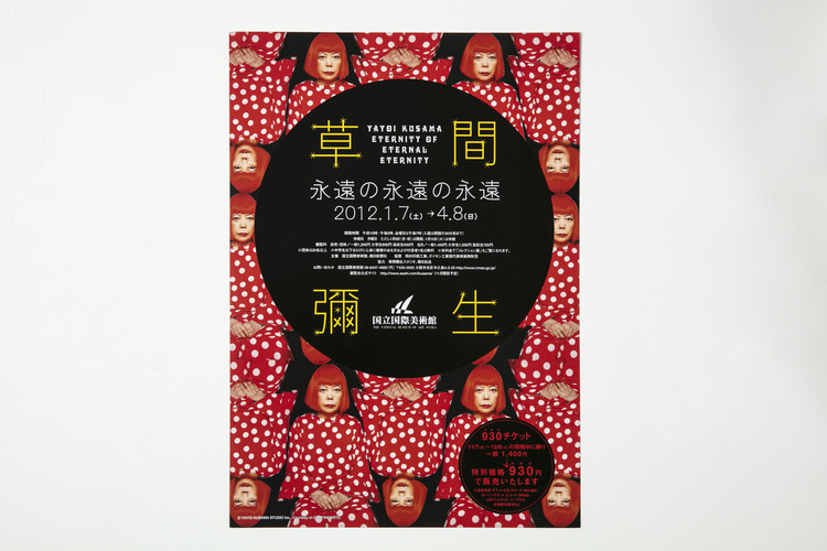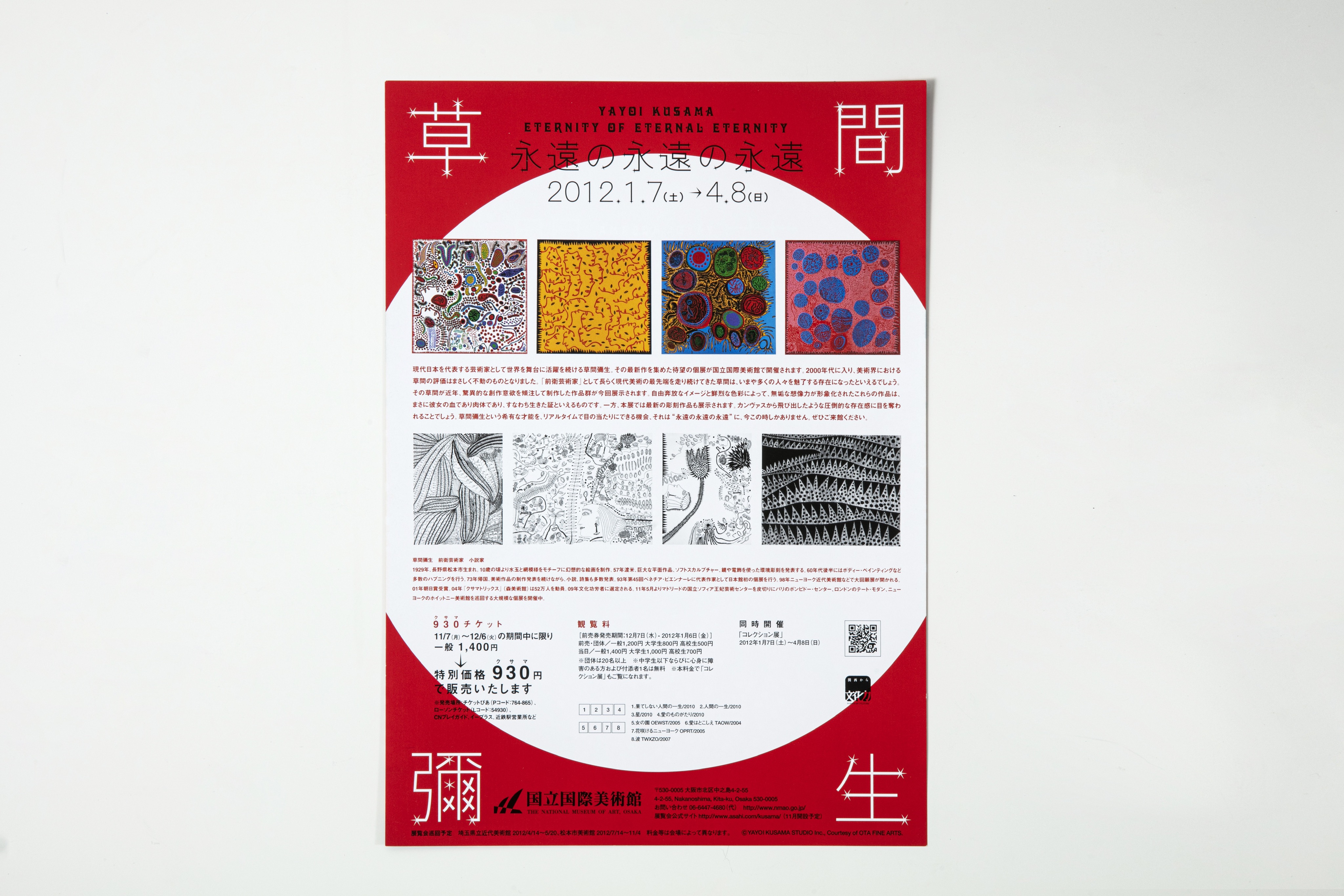 2012년에 오사카미술관에서 개최된 <쿠사마 야요이 : 영원한 무한의 무한> 전시의 홍보용 리플렛 쿠사마의 페인팅 및 판화 총 8점이 출품되었다.