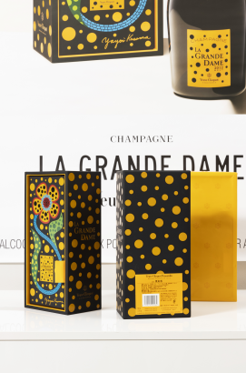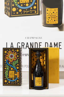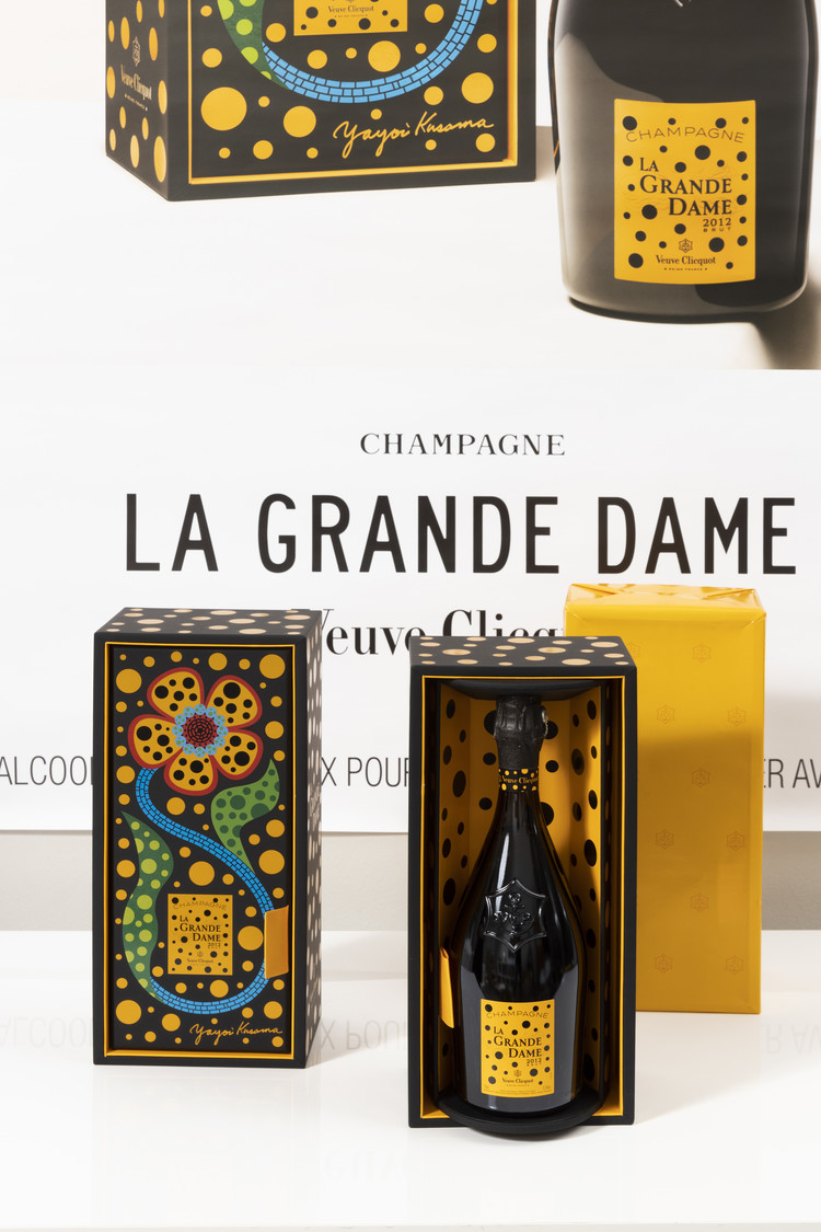 "아티스트 쿠사마 야요이가 Veuve Clicquot만을 위해 창조한 독특하고 유쾌하며 컬러풀한 작품으로 온 세계에 희망의 메시지를 전하고 있다. 쿠사마 야요이는 아이코닉한 상징으로 La Grande Dame 2012 케이스와 병을 장식한다. 표현된 호화로운 꽃은 삶과 사랑, 평화를 상징한다. La Grande Dame 2012를 둘러싼 작은 샴페인 방울같은 폴카 도트는 쿠사마 야요이의 시그니처 패턴을 새롭게 해석한 것이다." - 뵈브클리코 홈페이지 발췌