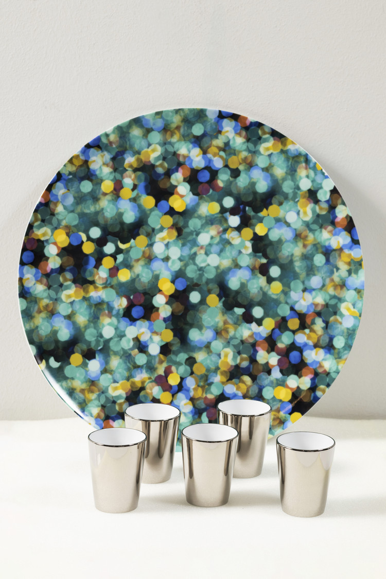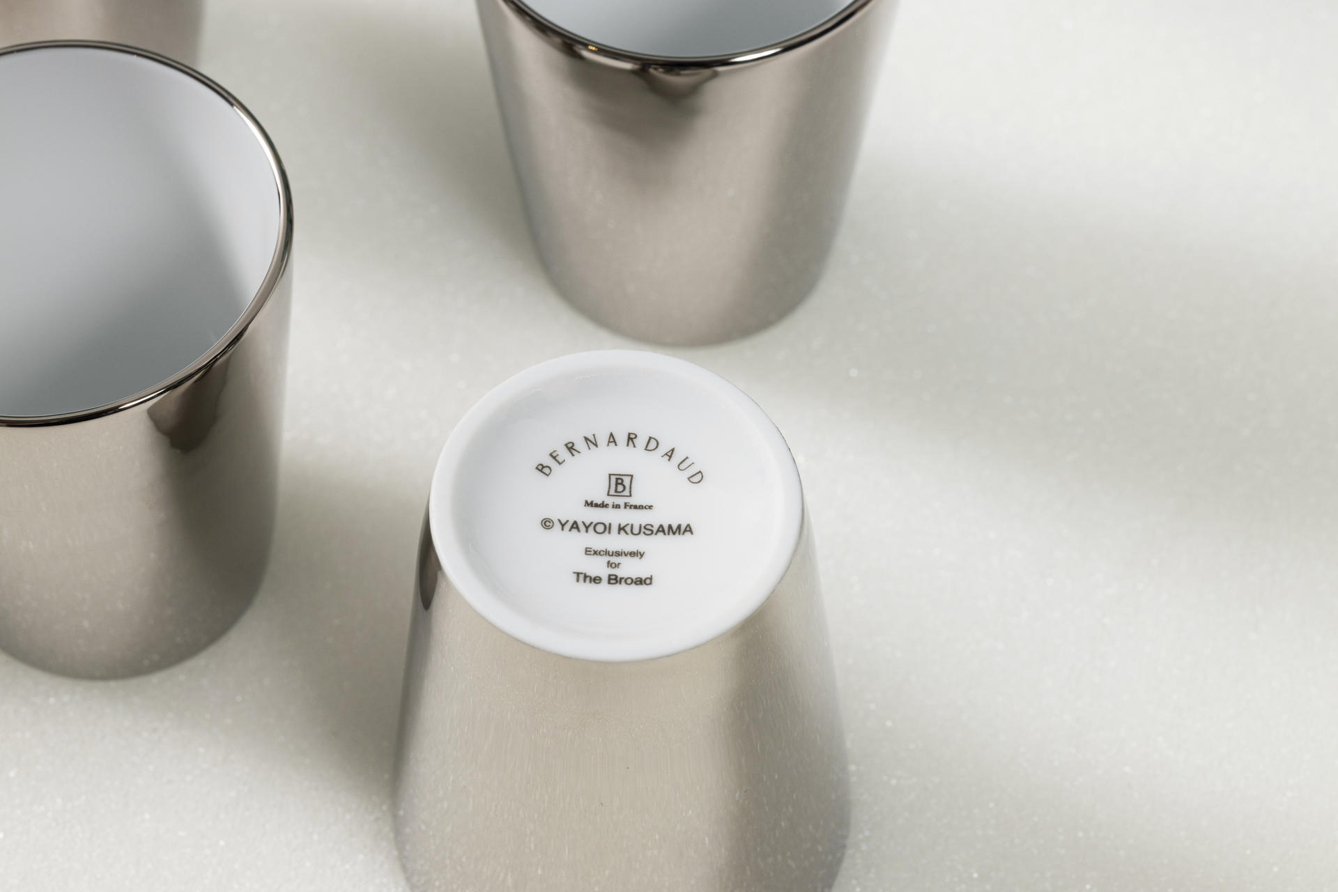 더 브로드 박물관 운영 책임자인 Jeannine Guido는 "우리는 실제로 <인피니티 미러(Infinity Mirrors) >설치 작품을 경험하는 느낌과 조금 더 비슷한 느낌을 주는 작품들을 만들고 싶었다"고 설명한다. " "접시의 무한의 무늬가 컵에 반사되었을 때 인피니티 미러(Infinity Mirrors) 와 완벽하게 일치할 것이라고 생각했습니다."