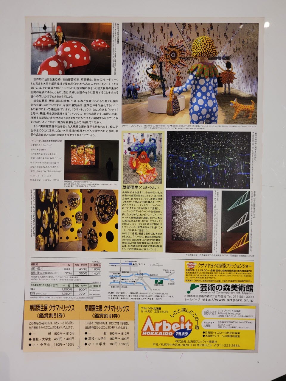 2004년에 삿포로미술관에서 진행된 쿠사마의 대규모 회고전 <KUSAMATRIX>의 홍보용 리플렛. 총 2장