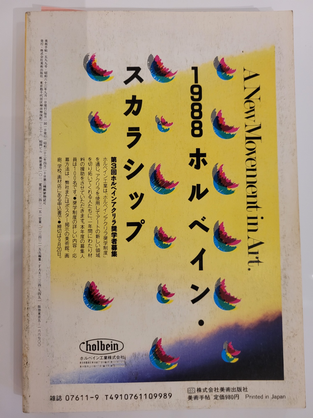 일본 예술잡지 <미술수첩> 9권 599호. 1988년에 발간되었다. 쿠사마의 개인전 광고가 실려 있다.