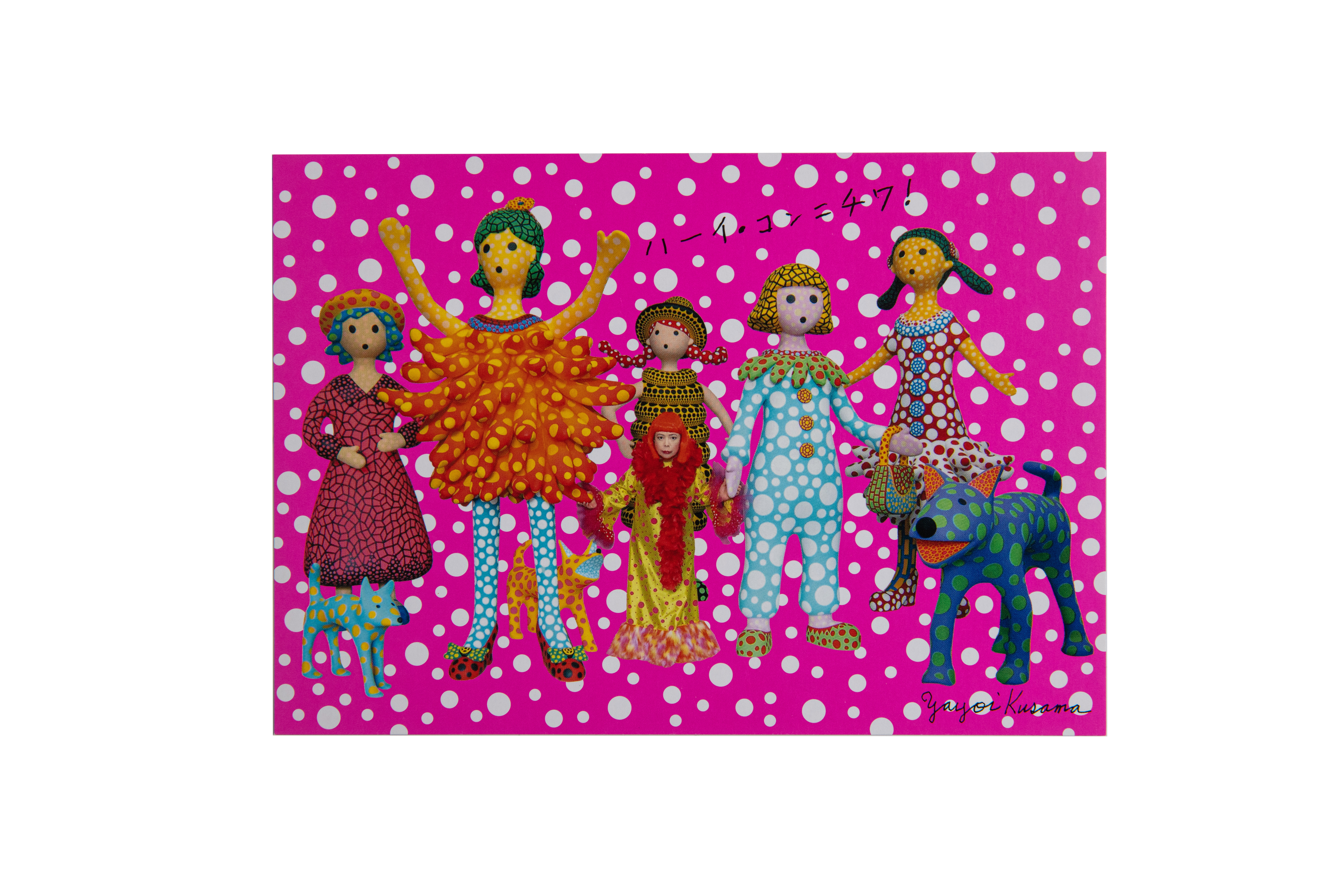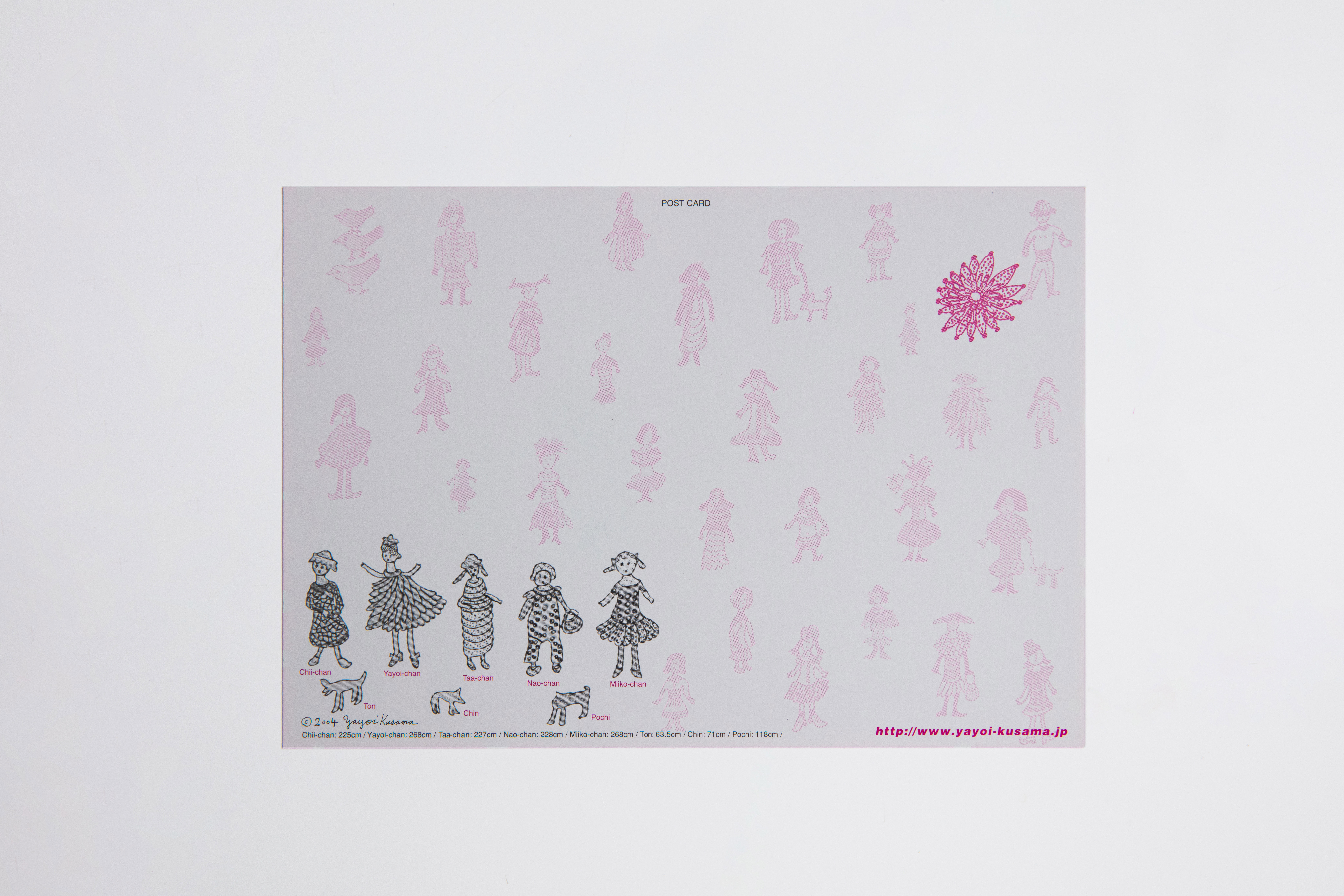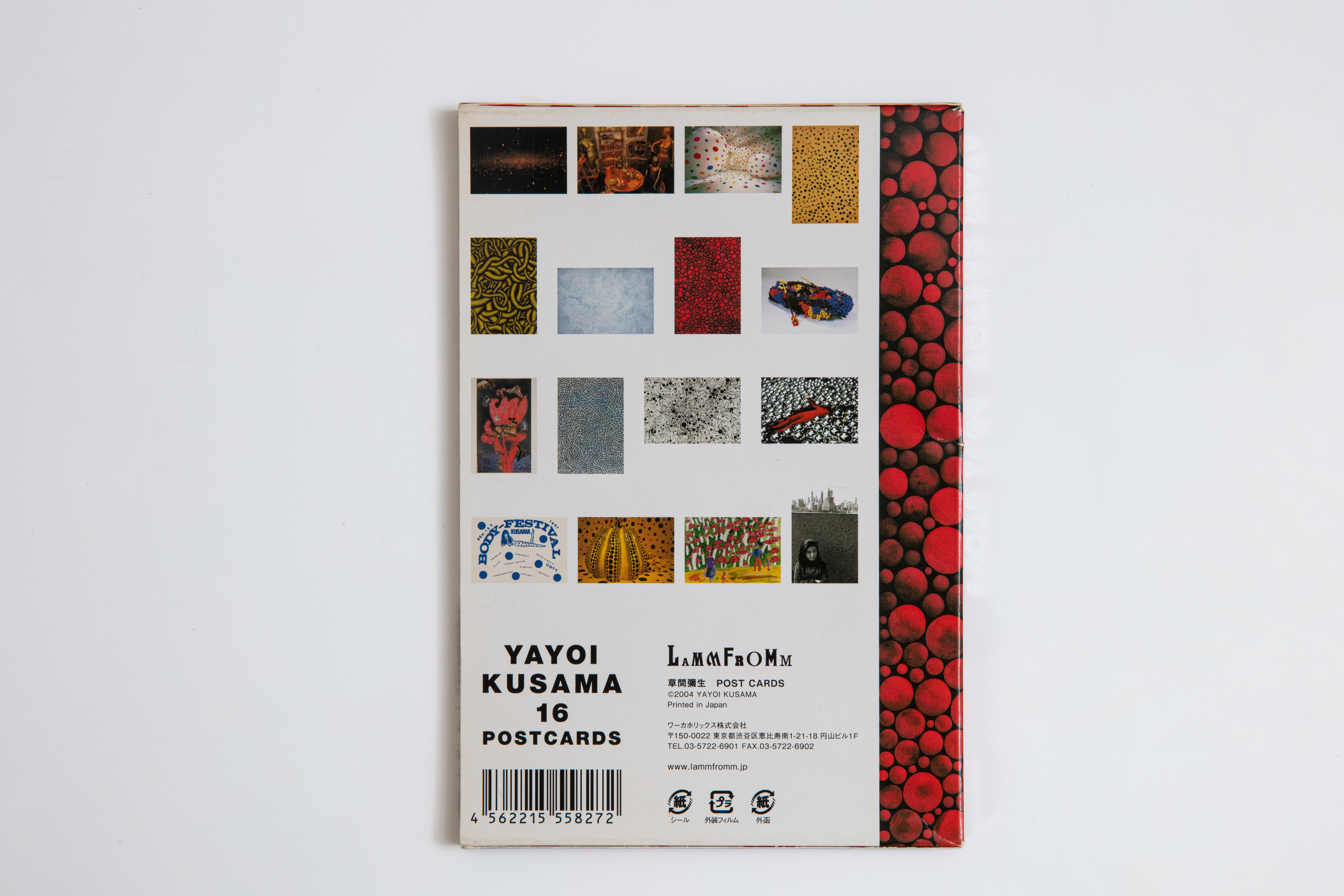 2004년에 출시된 쿠사마의 엽서 묶음. <호박 Pumpkin>, <나르시스 가든 Narcissus garden>, <무한의 망 Infinity Nets> 시리즈, <무한 거울의 방 Infinity Mirror room> 시리즈 등 쿠사마의 대표작 16점이 프린트되어 출시되었다. 현재 동봉된 엽서는 5매.