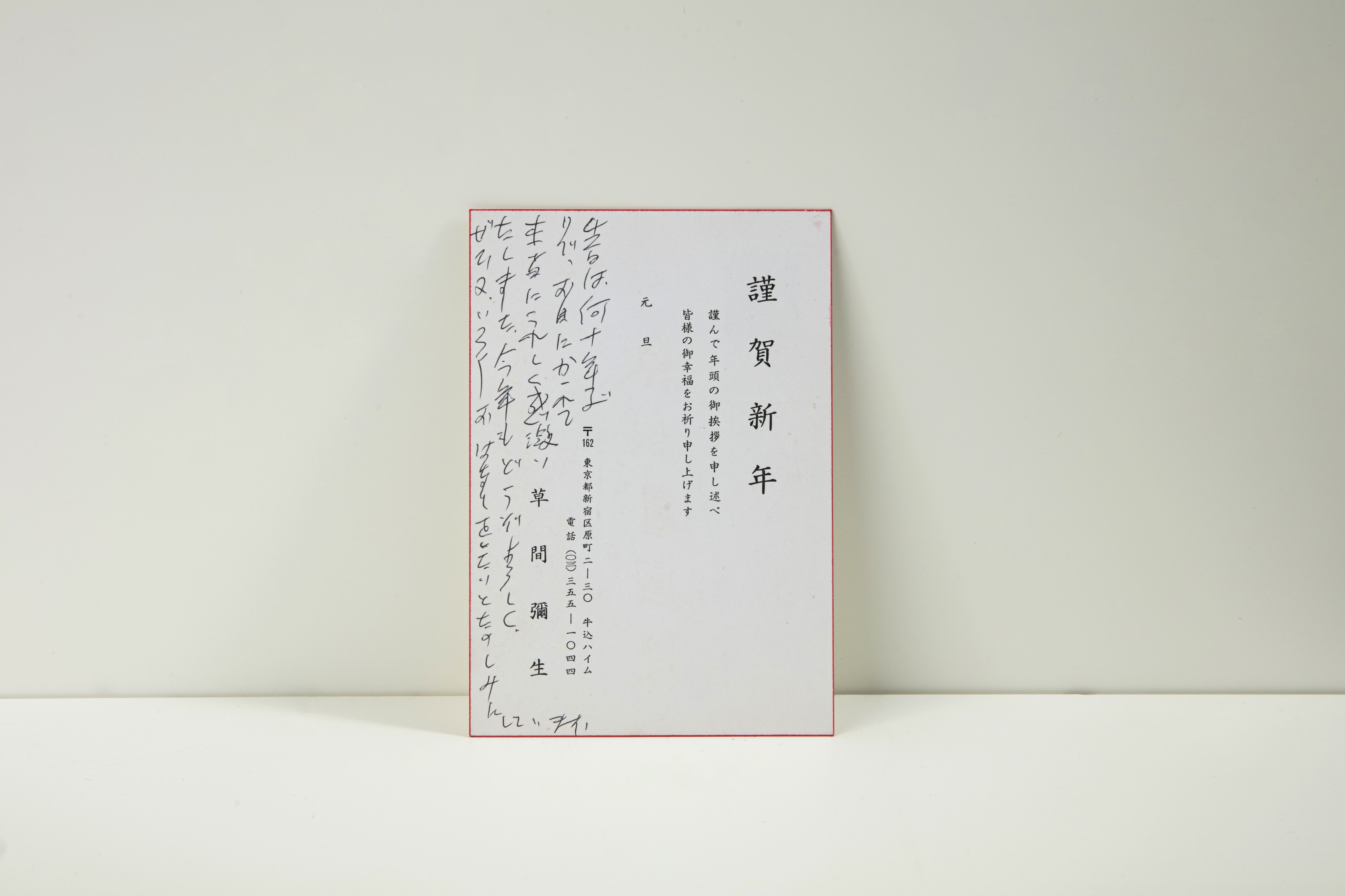 쿠사마가 이다 요시쿠니 (1923 ~ 2006,조각가, 현대미술가, 시인)에게 쓴 연하장