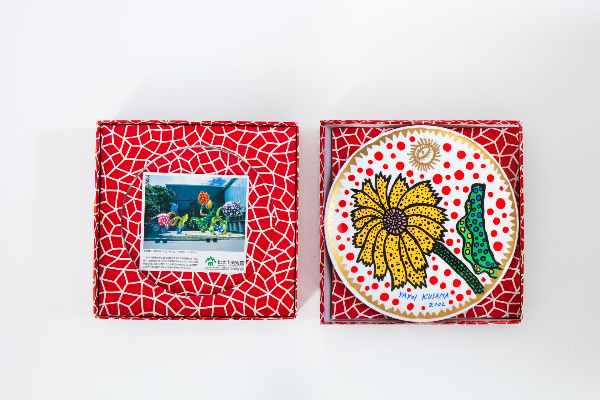 쿠사마의 고향 마츠모토시에 위치한 마츠모토미술관에는 쿠사마의 작품이 곳곳에 있는 것으로 유명하다. 마츠모토미술관은 쿠사마의 작품들을 이용하여 다양한 상품들을 출시한다.