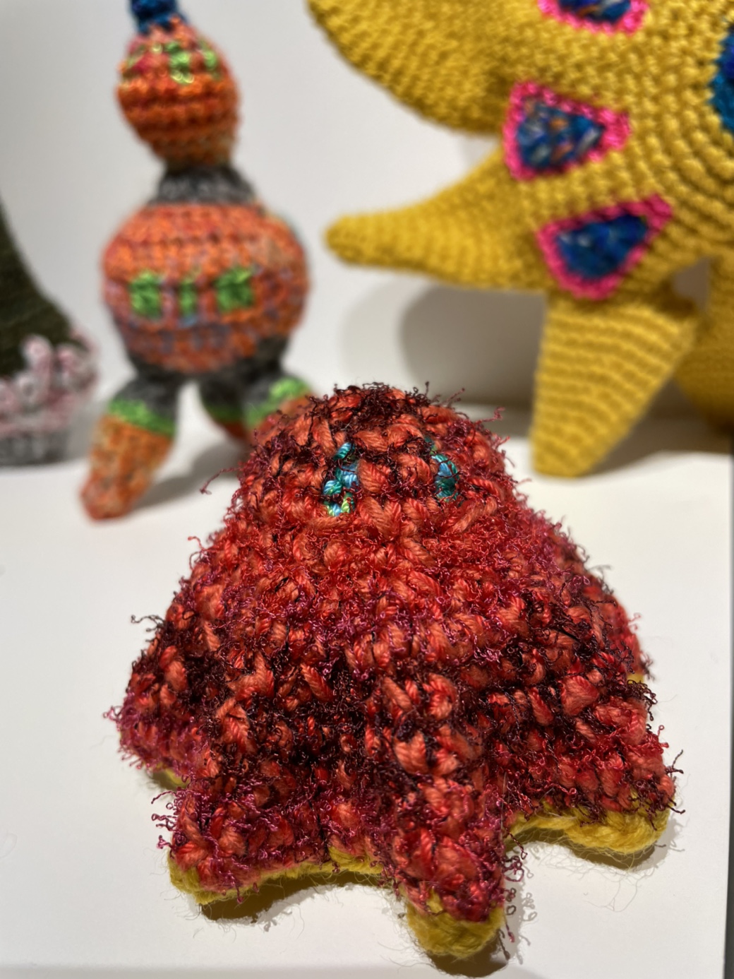 나는 크로셰, 코바늘 뜨기 테크닉으로 작업한다. 조형 예술과 조각의 기술은